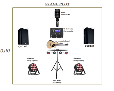 Area: 10 x 10 minimum for Entertainer, Sound Reinforcement and Lighting.